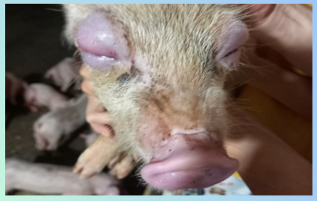 Vàng da ở heo cai sữa heo sưng mí mắt