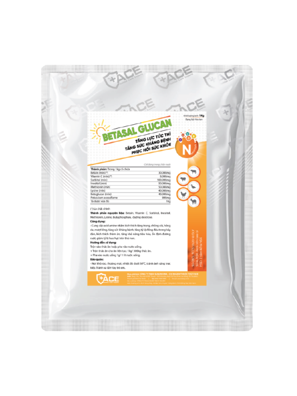 Nguyên liệu: Betain, Vitamin C, Sorbitol, Inositol, Methionine, Lysine, Beta-glucan, Đường Dextrose.