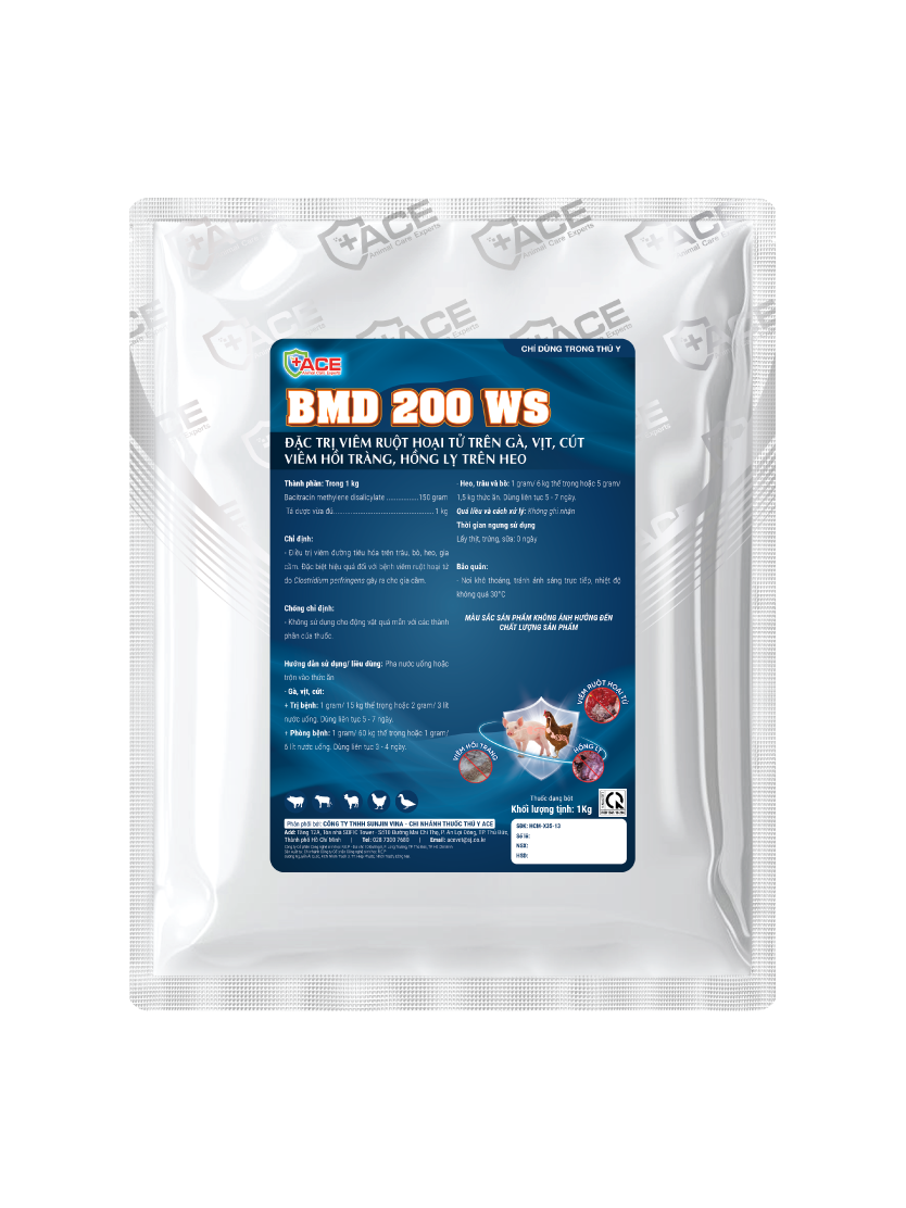 – Heo, trâu và bò: 1 gram/ 6 kg thể trọng hoặc 5 gram/ 1,5 kg thức ăn. Dùng liên tục 5 – 7 ngày.