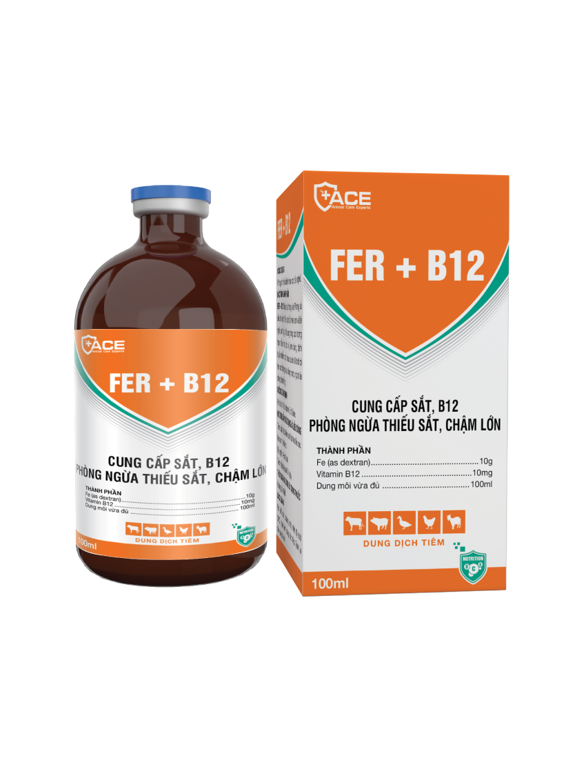 – FER + B12 hiệu quả trong việc Phòng và điều trị việc thiếu hụt sắt ở heo con và bê nghé, sử dụng bổ sung trong các trường hợp thiếu máu do ký sinh trùng, bệnh truyền nhiễm, mất máu sau sinh. Kích thích heo con hồng hào, bóng mượt, ngừa tiêu chảy phân trắng.