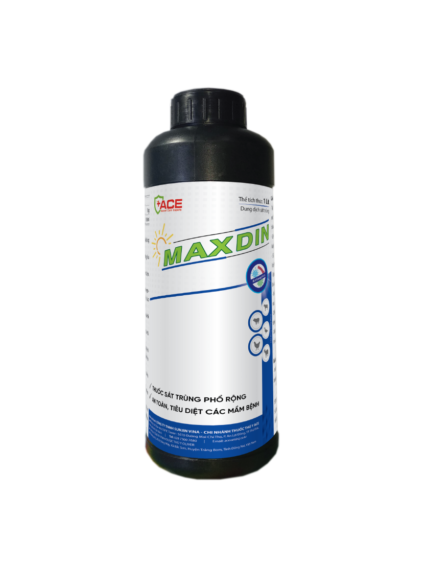 – Tiêu độc chuồng trại: 1 lít MAXDIN/ 100-250 lít nước. Phun đều lên bề mặt chuồng nuôi, dụng cụ chăn nuôi và môi trường xung quanh.