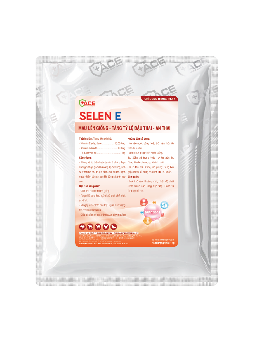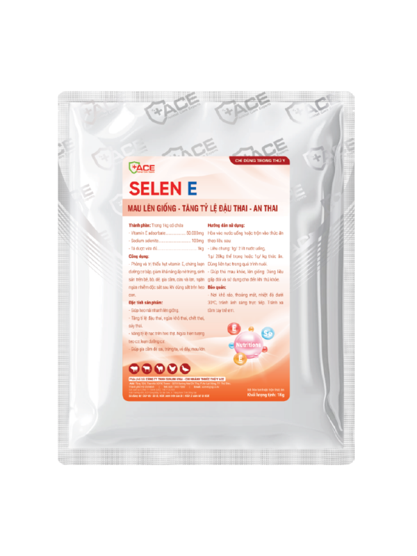 – Phòng và trị thiếu hụt vitamin E, chứng loạn dưỡng cơ bắp, giảm khả năng ấp nở trứng, sinh sản trên bê, bò, dê, gia cầm, cừu và lợn, ngăn ngừa nhiễm độc sắt sau khi dùng sắt trên heo con.